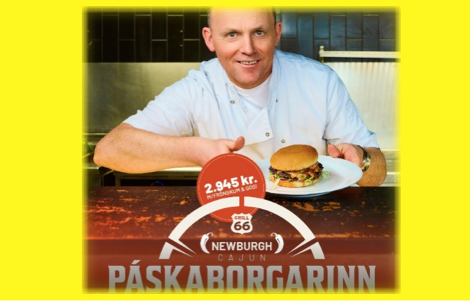 Páskaborgarinn á Grill 66 á bensínstöðvum Olís er kreóla-borgari sem nefnist Newburgh og er sköpunarverk Róberts Ólafssonar, matreiðslumeistara og eiganda á Forréttabarnum.